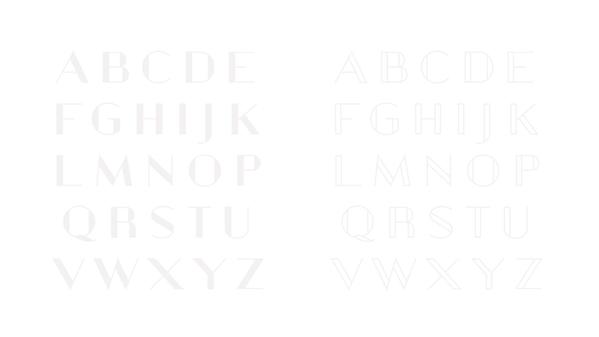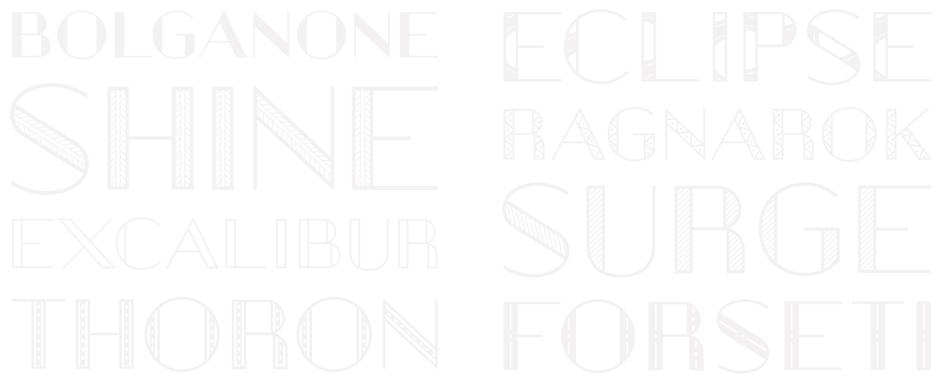 decorative typeface featuring patterns inspired by folk art from countries such as Ghana, Morocco, Zimbabwe and Tunisia. implemented into the alternative, hollowed out versions of the letterforms, the patterns allow for six additional fonts.